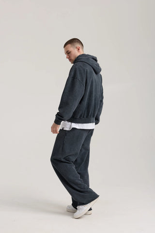 Essential Wave Washed Full Zip Hoodie | Puslu Siyah