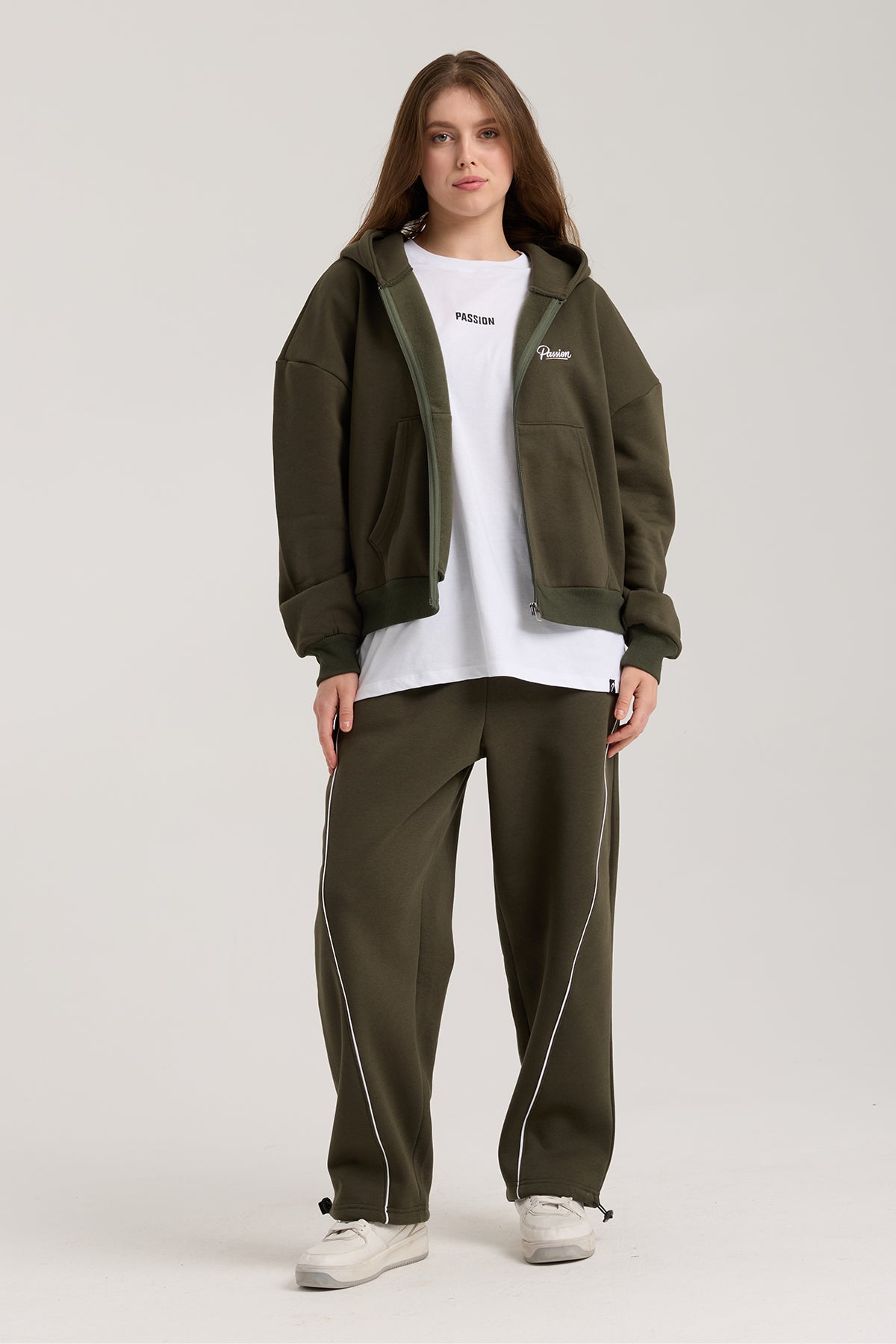 Soğuk havalarda maksimum konfor ve güçlü duruş tek parçada. Passion Basic Winter Full Zip Hoodie, haki rengi, yumuşak dokulu kumaşı, rahat kalıbı ve minimal PASSION logosuyla hem günlük kullanım hem de spor sonrası için ideal bir basic hırka sunar.