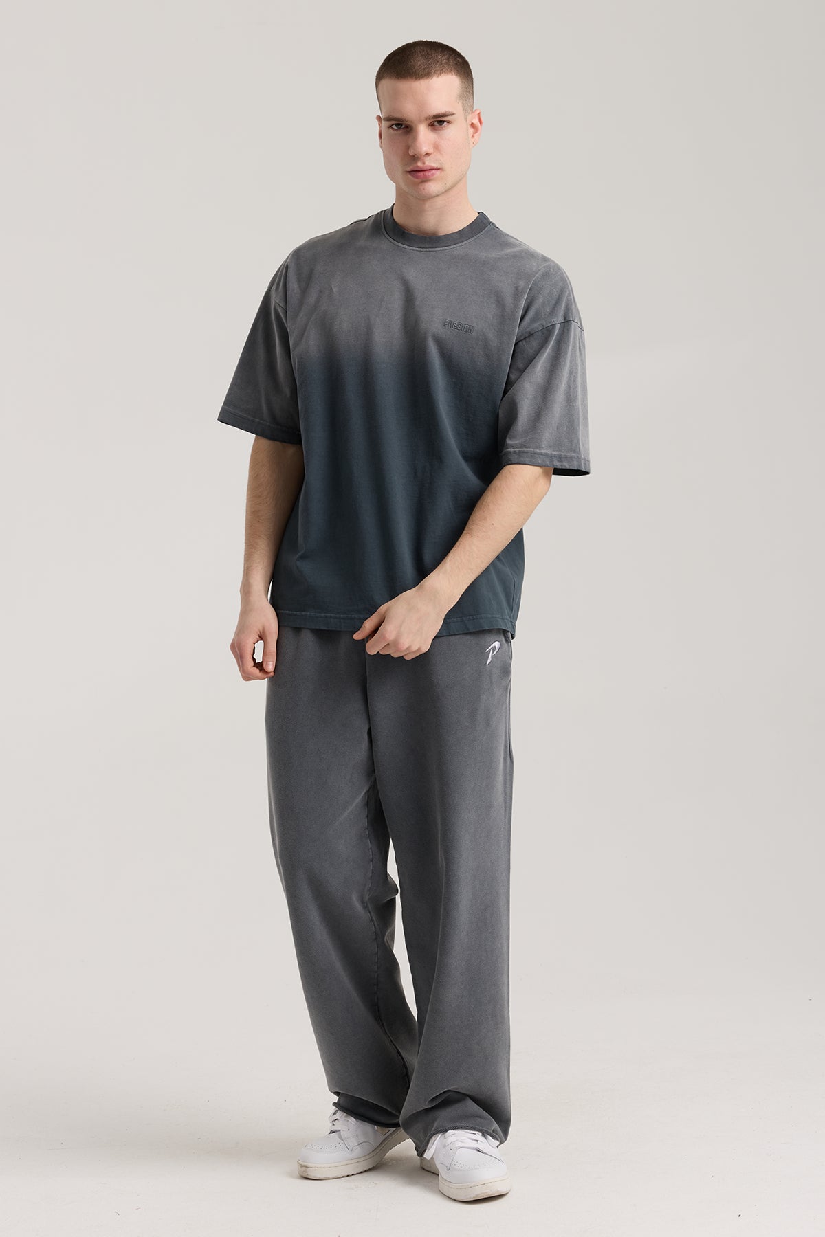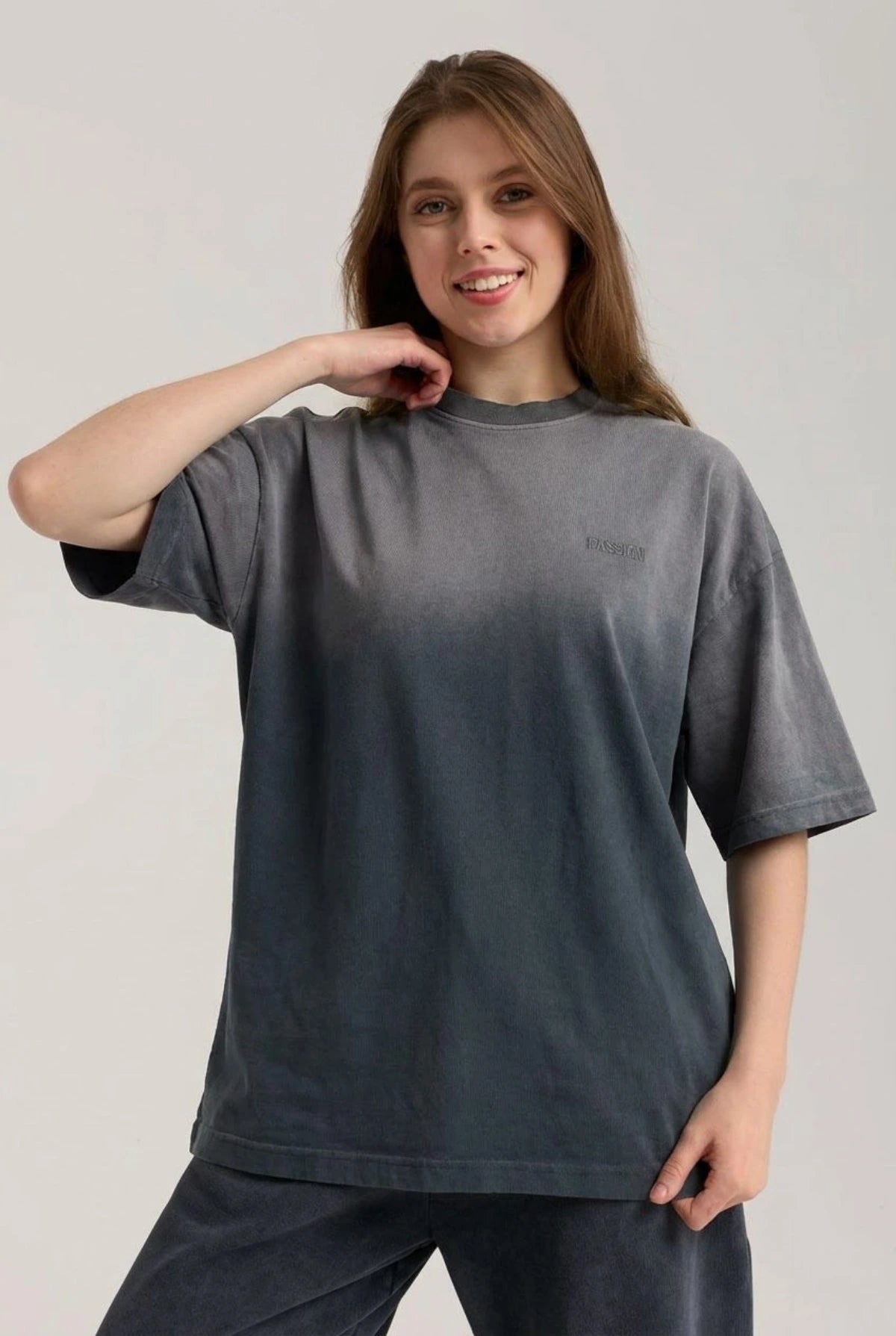 Passion Faded Basic Tee Tişört, kendine has gri rengi yıkamalı dokusuyla vintage bir görünüm sunan, oversize kalıpta rahat ve havadar bir gündelik parça. %100 pamuk kumaşın yumuşak hissiyatı, ön göğüsteki mini “PASSION” nakış detayı ile streetwear stilini tamamlar. Hem günlük şehir kombinlerinde hem de spor sonrası konforda ideal.